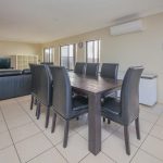 * Large tiled combination living, dining and kitchen area with air condition unit